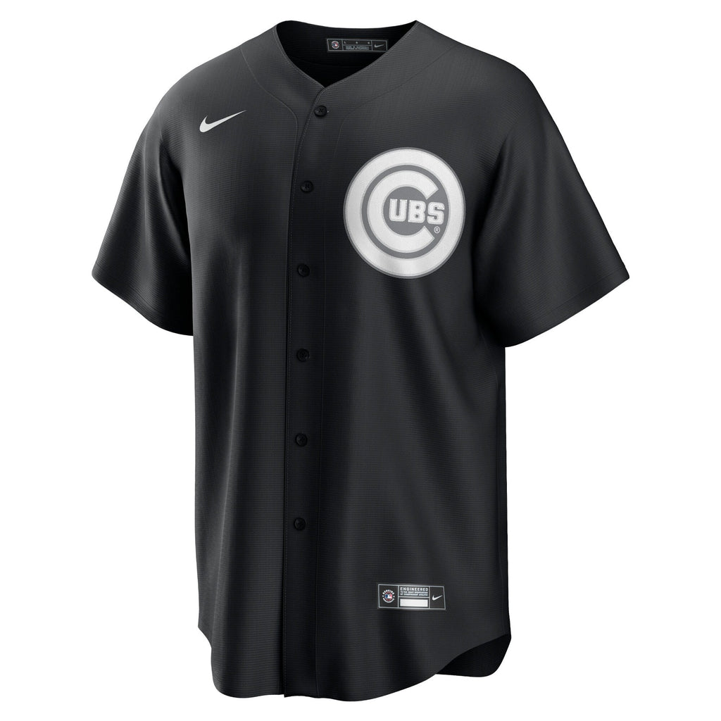 Make a unique addition to your selection of Chicago Cubs gear with this Official jersey from Nike. The black and white design is the perfect change of pace from your typical Chicago Cubs jersey and it only helps to make the graphics stand out even more. Featuring a full-button front, this is just what you want to wear to the ballpark this season.