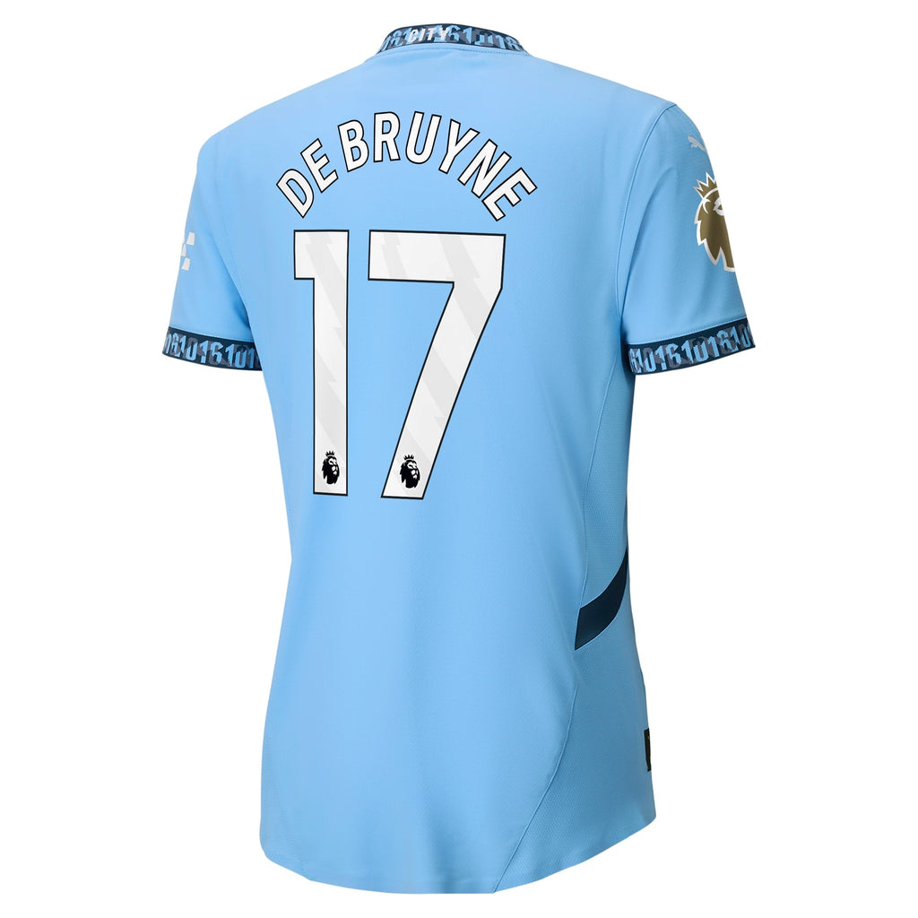 Rep Manchester City like you're part of the team with this 2024/25 Home Player Jersey. This Puma jersey features details straight from the pitch that are sure to identify you as a loyal fan. This Kevin De Bruyne jersey is also equipped with DryCELL technology to help keep you dry and comfortable for the whole match.