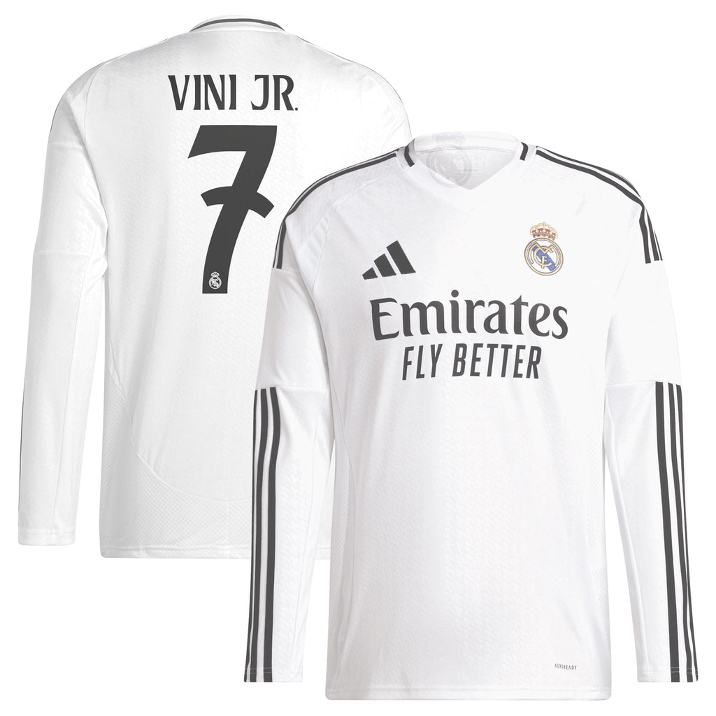 Look and feel like the real deal when you add this Vini Jr. 2024/25 Home Long Sleeve Player Jersey to your Real Madrid collection. This adidas gear features AEROREADY technology as well as ventilated, mesh panels that work together to keep you dry and comfortable all game long. Its exciting Real Madrid graphics will get you pumped to cheer on Los Blancos as they take the pitch.